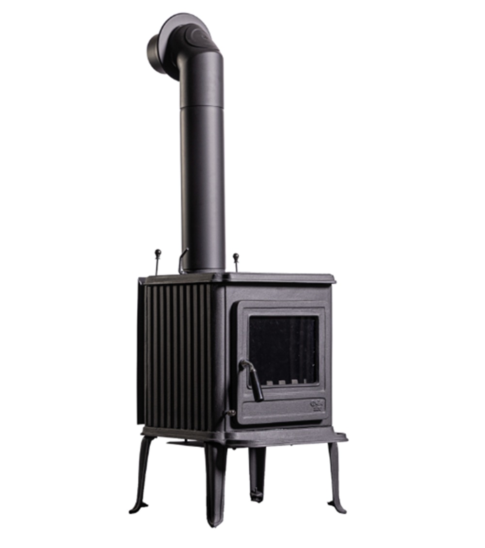 Der Strahlungsofen ist ausschließlich aus Gusseisen. Für Liebhaber eines geradlinigen Designs ist er mit einer schnörkellosen Feuerungstüre ausgestattet. Weitere Ausstattungsmerkmale sind ein Dreh/Fächerrost und ein Ascheschieber. Die max. Holzscheitlänge beträgt 28 cm.