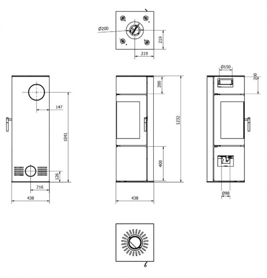 - Rauchrohranschluss: Ø 150 (oben oder beidseitig hinten möglich)