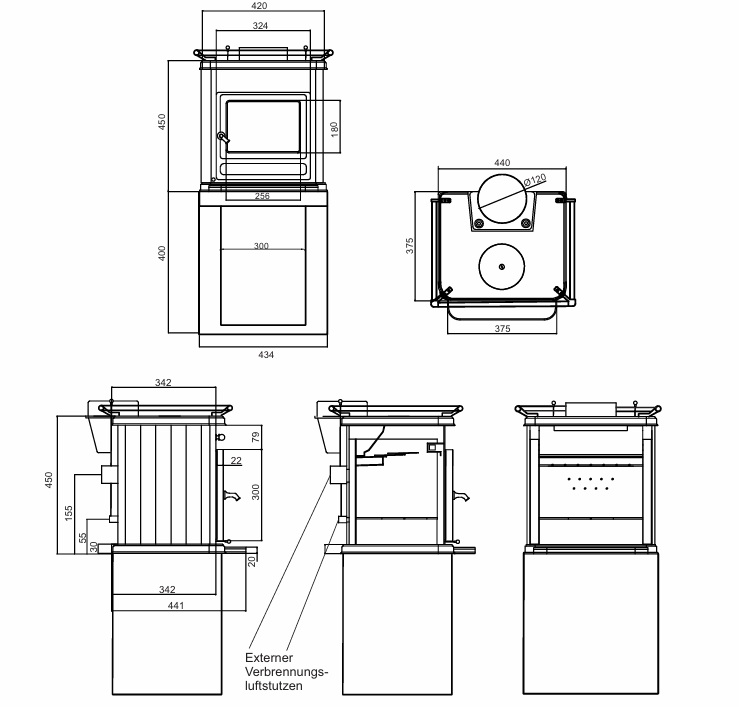 - Brennstoff: Holz; Kohle wurde nicht geprüft