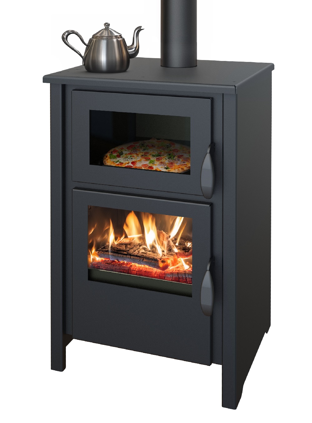 Kochen und Heizen gleichzeitig - dieses Problem wird in eleganter, praktischer und rationeller Form gelöst: Mittels eines in den Kaminofen integrierten Backfaches ist es möglich, unabhängig von Strom oder Gas zu Kochen oder zu Backen. Im Backfach können Sie Pizza oder Brot bzw. Brötchen backen. In kürzester Zeit werden Pizzas perfekt knusprig wie im italienischen Restaurant. Backfachtemperaturen von 280°C sind ohne Probleme möglich! Auch ist das Backfach schön gleichmäßig heiß.