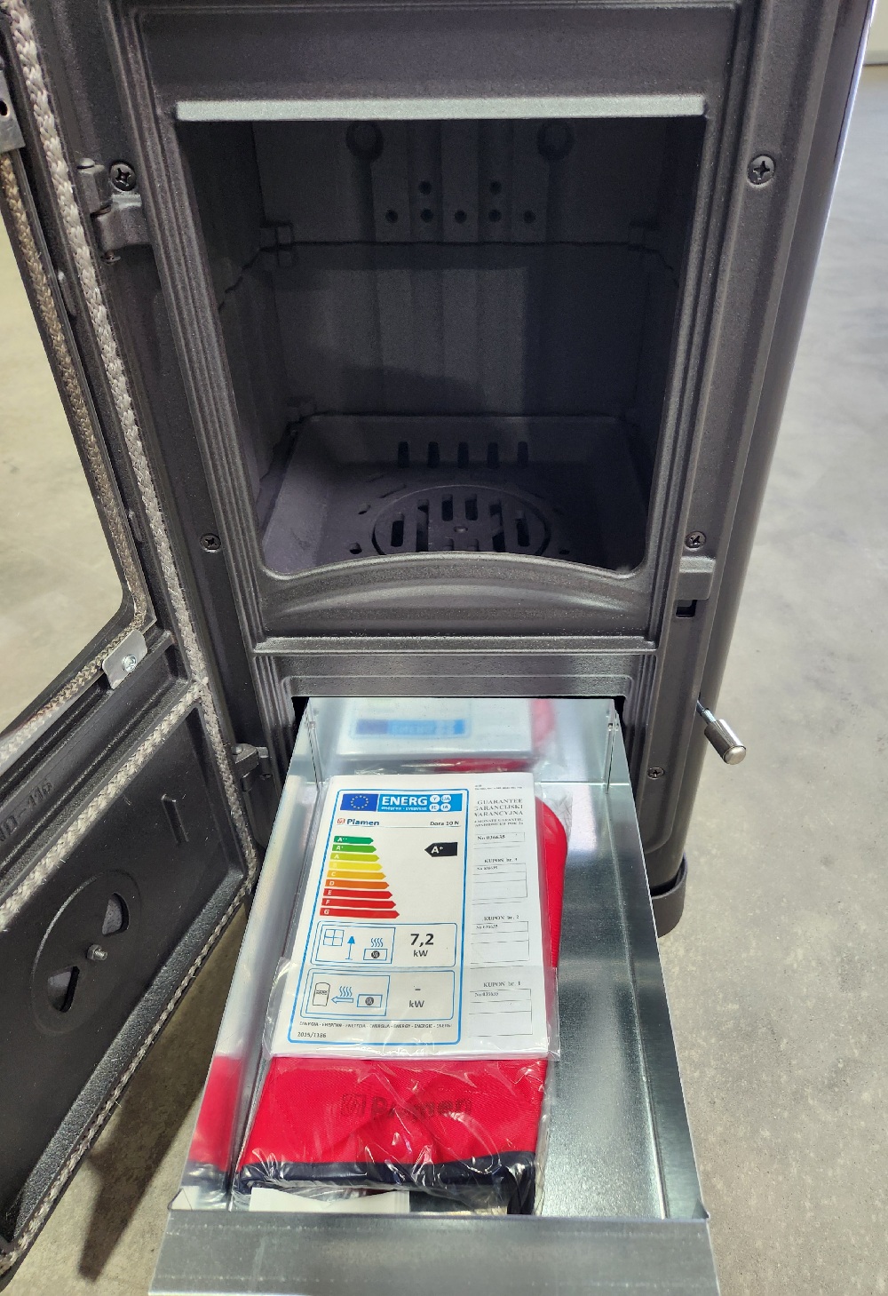 Der praktische Rüttelrost, der geräumige Aschekasten und die Kamintür mit ergonomischem Türgriff sorgen für eine hohe Bedienfreundlichkeit. Dank des großzügigen Brennraums können Holzscheite von bis zu ca. 36 cm Länge verwendet werden – der Ofen stellt somit eine zuverlässige und komfortable Heizlösung dar.