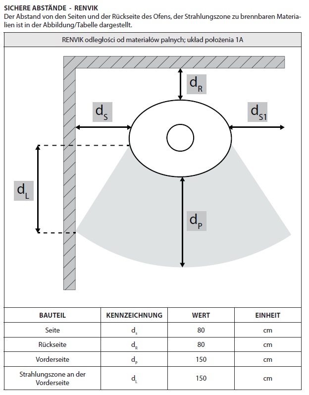 - Rauchrohranschluss: Ø 150 (oben oder hinten möglich)
